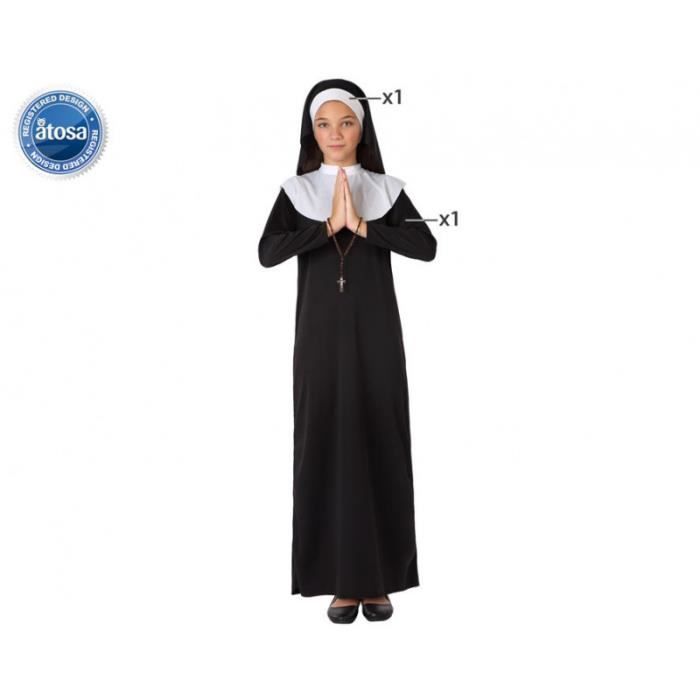 Déguisement religieuse enfant noir AC-DÉCO - 7/9 ans - robe longue et foulard
