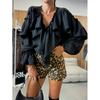 Autumn Design Sense V-Neck Long Sleeve Solid Color Versatile Shirt Top for Women