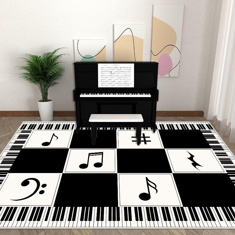 Geometric Music Instrument Crystal Velvet Non-Slip Sound-Insulating Piano & Drum Floor Mat - Dirt-Resistant, Washable Carpet