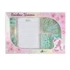 Macaroon-Color Stationery Set: Paper Clips, Stapler, Rubber Bands, Lined Notebooks, Thumbtacks, Push Pins, and Binder Clips.