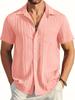 Men's Casual Button Down Shirts with Pocket Short Sleeve Textured Summer Holiday Beach Wedding Shirt