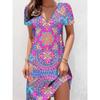 Retro V-Neck Floral 3D Print Dresses Women Vintage Short Sleeve Summer A-Line Elegant Party Dress Ladies Casual Loose Boho Dress