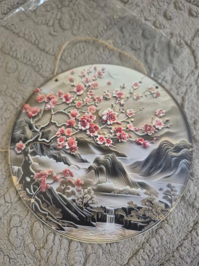 Golden Wooden with Traditional Design of Chinese and Cherry Blossom Artwork, Wooden Sign, Wall Art, Home Decor, 8x8in
