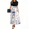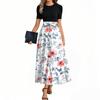 Women's Elegant Fashion Floral Print Belted Short Sleeve Round Neck Splicing Casual Dress