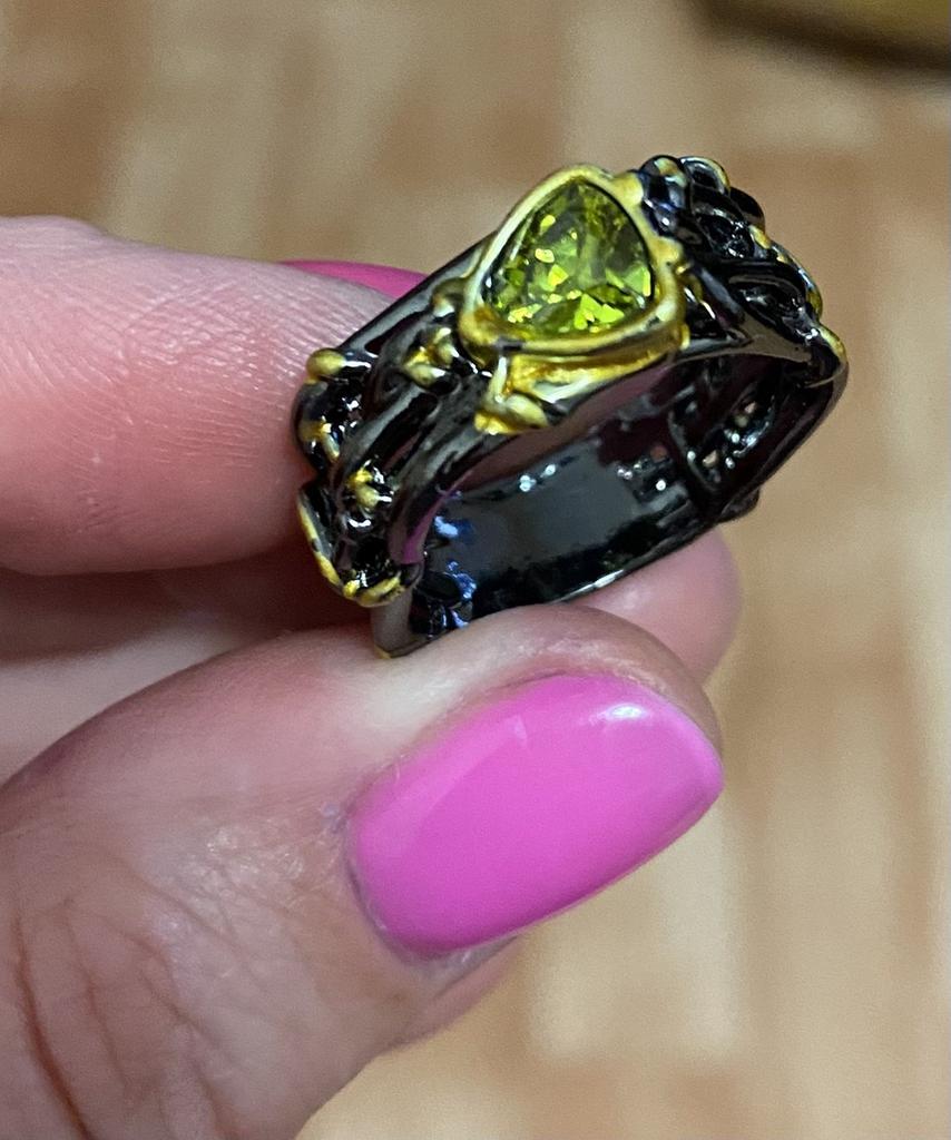 Ring Two Tone Olive Green Zircon Ring European And American Personalized Temperament Men's And Women's Styles