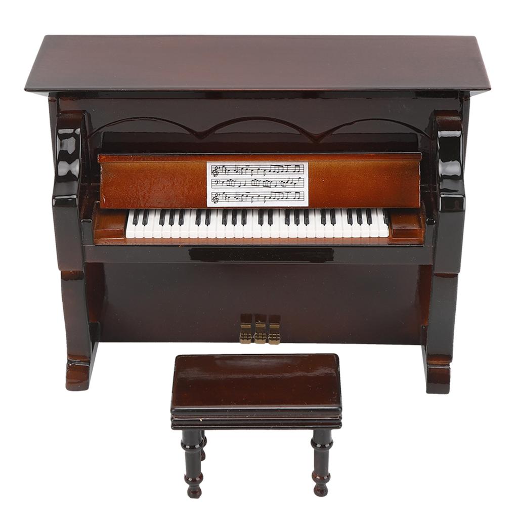 Wooden Miniature Upright Piano Mini Musical Instrument Model Children Gift Home DecorBrown