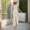VEZFAA Women's Fashion Casual Summer Spring Solid Color Print Short Sleeve Square Collar High Waist Trousers Jumpsuits & Rompers