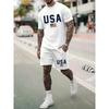 Men Tracksuit 2 Piece Sets Summer Sports Short Sleeve Set Casual Running Shorts Sport Suit
