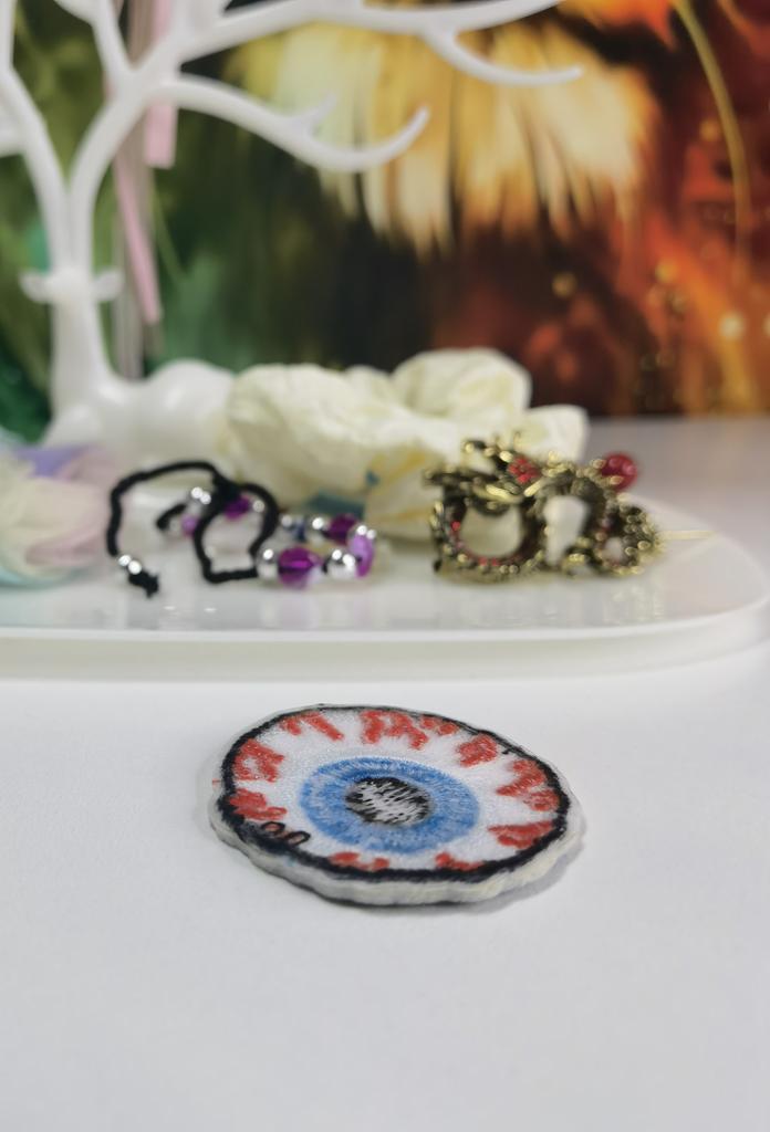 Iron-on eyes The sticker is embroidered neatly, high-quality, you want to look at it. The details are small, the colors are colorful. The sizes correspond to the promo photo. Glued to clothes with an iron. Can be additionally sewn for reliability. I used it to decorate outerwear, hats, bags, backpacks, fabric shoes (ballet shoes, Czech shoes), etc.