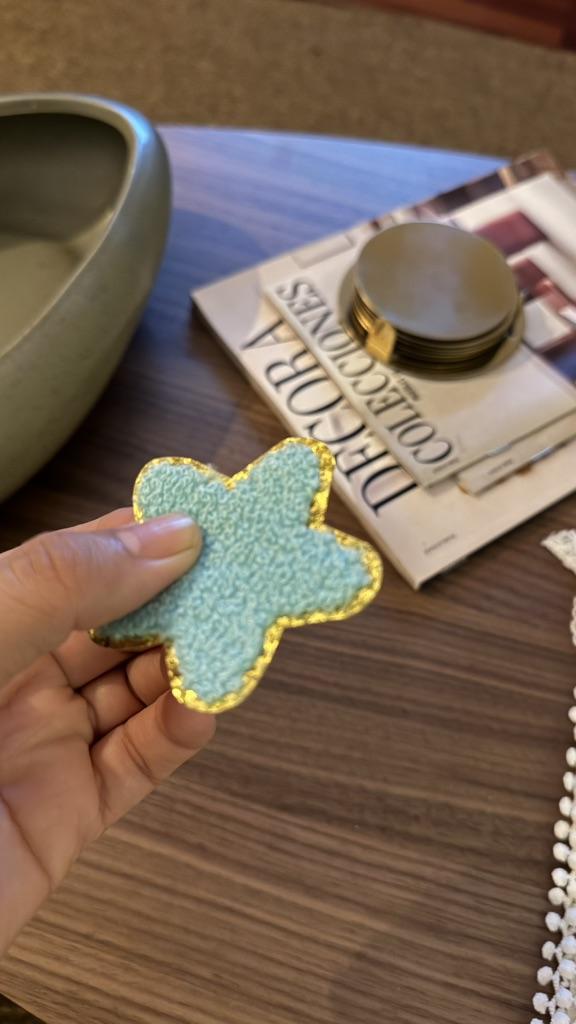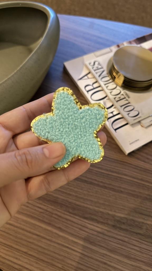 🌟 English Review: So pretty and soft! 💙⭐ Lovely texture with shiny gold edges ✨ High-quality embroidery 🧵👌 Perfect size — about 6×6 cm 📏 Looks exactly like the picture 📸 Can be used on clothes, tote bags, hats or shoes 👕👜🧢👟 Fast delivery 🚚💨 Perfect as a small cute gift 🎁🌷 ⸻ 🌟 Arabic Review : جميلة وناعمة جدًا! 💙⭐ ملمس رائع وحواف ذهبية لامعة ✨ جودة تطريز عالية 🧵👌 الحجم مثالي تقريبًا 6×6 سم 📏 مطابقة تمامًا للصورة 📸 يمكن استخدامها على الملابس، الحقائب، القبعات أو الأحذية 👕👜🧢👟 التوصيل سريع 🚚💨 هدية لطيفة وصغيرة جدًا 🎁🌷