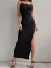 Sexy Black Long Bodycon Dress Women Summer Sleeveless Square Neck Spaghetti Strap Dresses