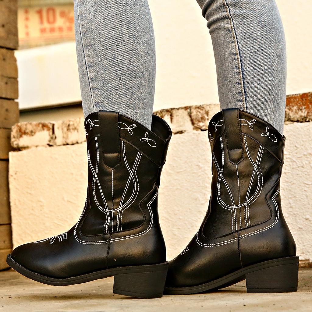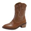 European and American Large Size Western Boots Cowboy Boots Women's Pointed Head Thick Heel Embroidered Short Boots Sleeve Fashion Boots Spring and