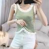 Summer New Port Flavor Striped Short Knitwear Top Women Summer Slimming Wooden Ear Edge Halter Small Vest