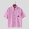 INCERUN Men Oversized Lapel Neck Summer Striped Buttons Up Casual Loose Shirts