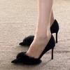 Women High Heel Shoes Fur Slippers Mules Pointed Toe Furry Slides Fashion Elegant Luxury Designer Flip Flops Office Pumps