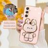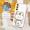 A 15 25 35 55 Luxury Plating Mirror Holder Case For Samsung Galaxy A15 A25 A35 A55 5g A05s A05 M14 M54 Silicone Stand Cover A04s