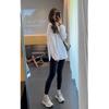 White Mid-length Base Shirt for Women Covering The Butt Sweatshirt with Layered Long-sleeved T-shirt Shark Pants Top