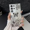 Black Butterfly Print Glitter Glossy Phone Case For Samsung S25 S24 FE S23 Ultra A56 A36 A55 A16 A15 TPU PC Hybrid Shockproof Slim Clear Bumper Cover