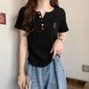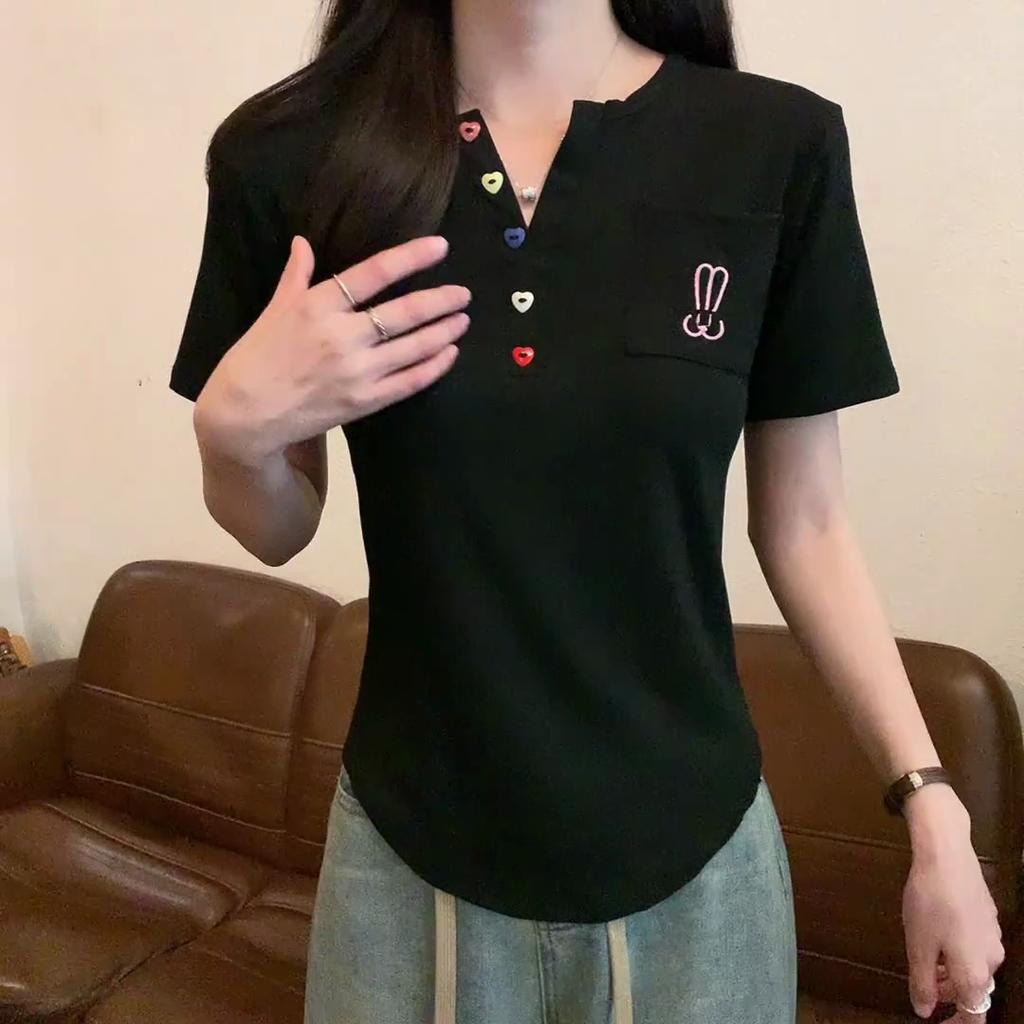 Summer Pure Cotton Irregular Solid T Shirts Women‘s V-neck Short-sleeve T-shirt Casual Slim Elastic Skinny Y2k Top Women Clothes