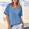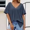 Women's Fashion Casual Drop Shoulder Short Sleeve Deep V-Neck T-Shirt Top