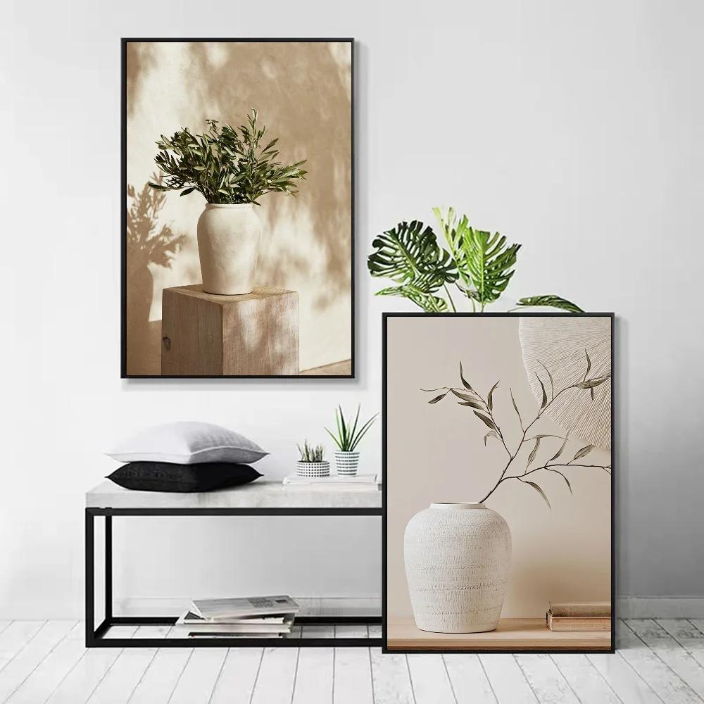 1pc Vintage Minimalist Wall Art Italy Olive Tree In Vase Poster Self-adhesive Art Waterproof Paper Sticker Wall Decor