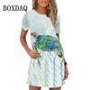 New Women Summer Beach Sundress Elegant Sweet Cute Cartoon Cat Print A-Line Dress Loose Casual Short Sleeve O-Neck Mini Dress
