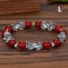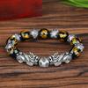 Attract Wealth Buddhism Bead Black Cuff Bangle Silver PiXiu Obsidian Wristband Feng Shui Bracelet