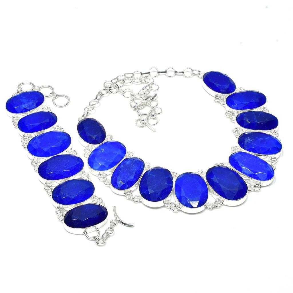 Blue Sapphire Gemstone Handmade 925 Sterling Silver Jewelry Blue Sapphire Neclace Bracelet Set, Antique Jewelry Set, Party Wear Gifts
