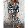 Women's Spring Summer Four-sided Elastic Casual V-neck Print Pleated Dress