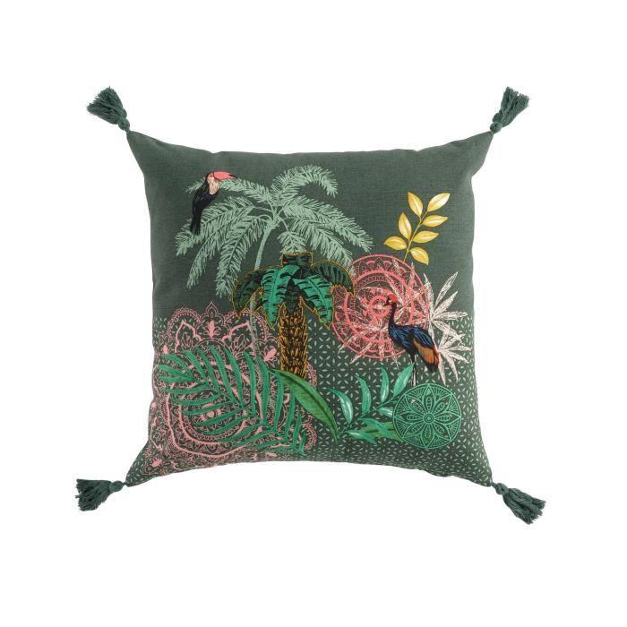 Coussin décoratif - Wonderland - Vert - 45 x 45 cm - Déhoussable - Motif animal