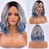 Short Bob Synthetic Wig Ombre Pink Water Wave Hair Wigs For Black Women With Bangs Cosplay Lolita Heat Resistant Natural Hair