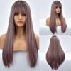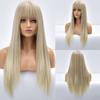 Natural Black Straight Synthetic Wigs For Women with Bangs 28Inch Daily Party Cosplay Wigs Heat Resistant Natural Hair Wig
