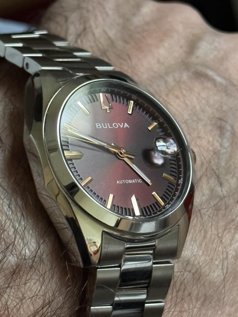 BULOVA Surveyor Stainless Steel Burgundy Dial Automatic 98B422 Men's Watch