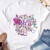 FAITH HOPE LOVE Purple Flower Print Women T Shirt Short Sleeve O Neck Loose Women Tshirt Ladies Tee Shirt Tops Camisetas Mujer