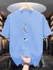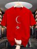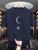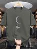Astronaut & Moon Print Men'S T-shirt, Casual Short Sleeve Crew Neck Tee, Composition, Regular Fit, Slight Stretch