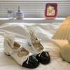 2025 Spring New Square Head Bow Shallow Mouth Mary Jane Shoes French Fairy Small Fragrant Wind Medium Thick Heel Single Shoes Women