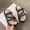 Stepping On Shit Soft Leather Sandals Women's Summer Thick-soled Muffin Slippers Toes with Skirts Pregnant Women Wear Roman Beach Shoes