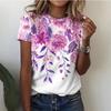 2025 Women's Street Fashion T-shirt Flower 3D Printed Short Sleeve Daily Versatile Casual Loose Round Neck Top Women's Wear
