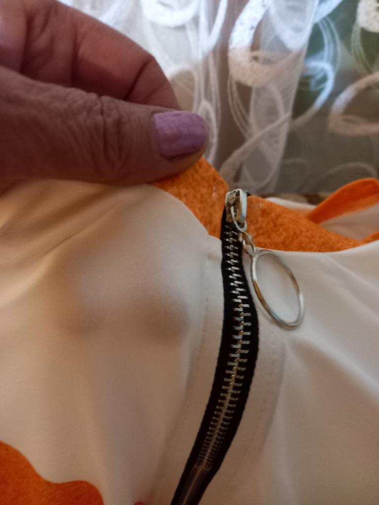 The item runs very large, the knitwear is very thin, the zipper is too rough, sewn in crookedly. Nothing in common with the image on the "display".