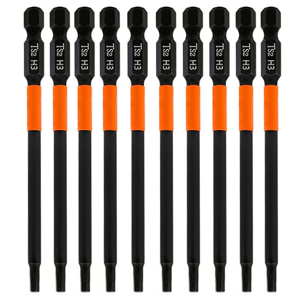 10PCS Hex Screwdriver Bit Set 100mm H3 TS2 Steel Magnetic Drill Bit for Electric Drill Screwdrivers