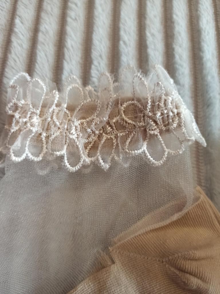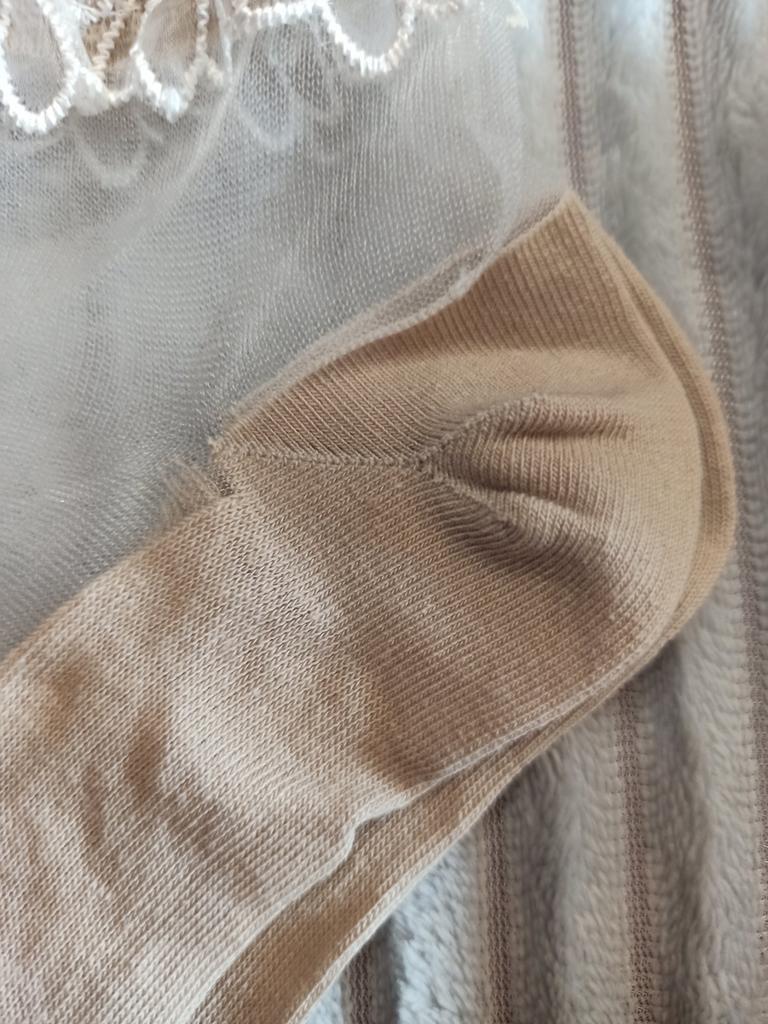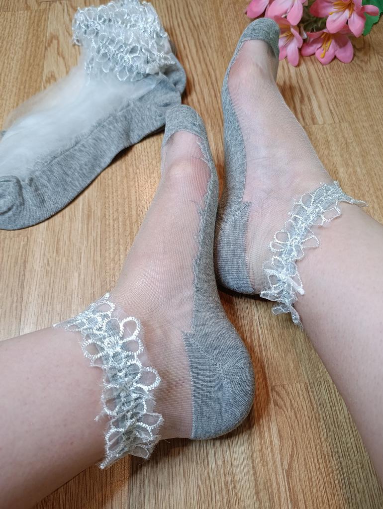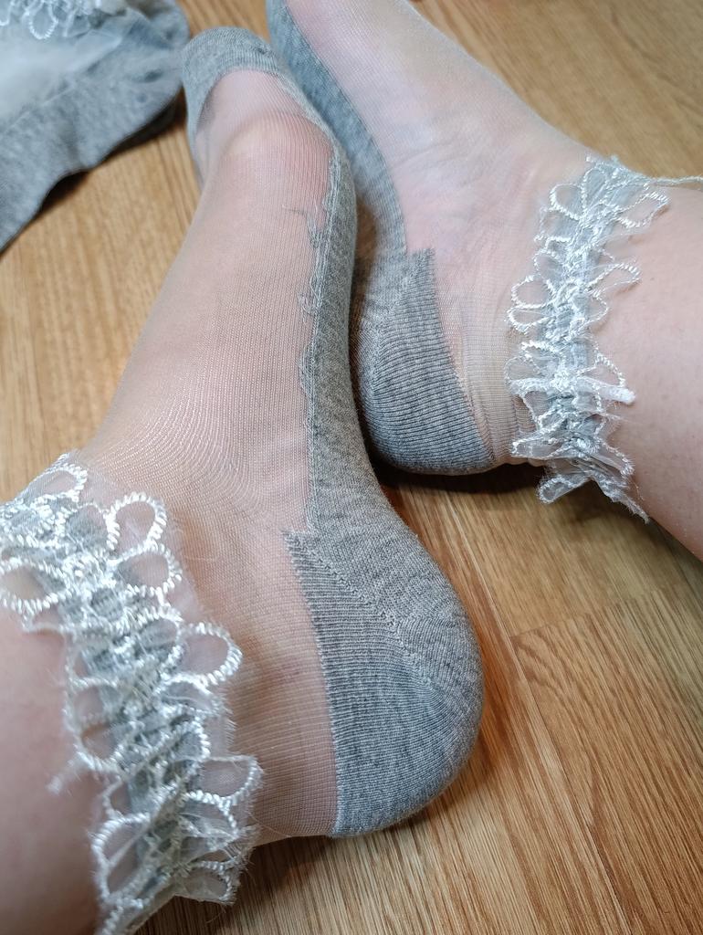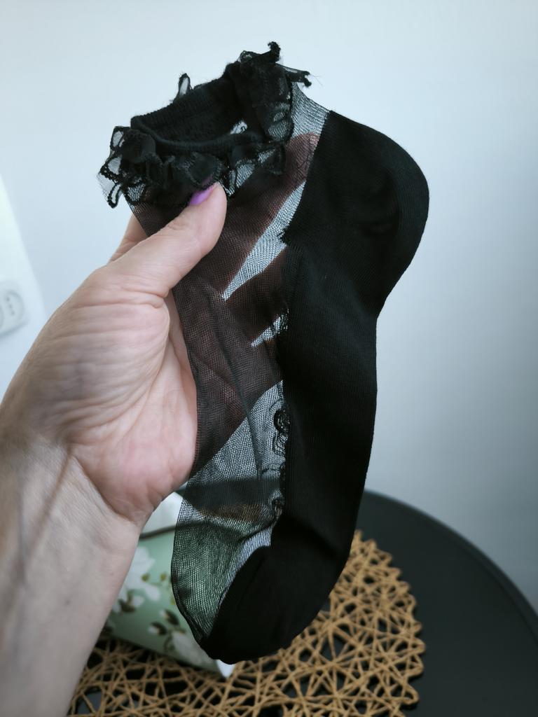 🧦 The women's socks, which are packaged in sets of 5 pairs, have a lace trim and are cut relatively short. They are offered in one size.. I received the product after a three-week delivery time very well packaged and consolidated delivered in Austria. 🧦 The women's socks are available in various colors and are edged all around in textile.. The majority of the sock is transparent. 🧦 I wear shoe size 40/41 and for me the socks are borderline tight. I will therefore give the model away and recommend washing it at 30 degrees in the washing machine in a laundry net and hanging it up to dry.. 🧦 These women's socks are visually very appealing and of very good quality, therefore I highly recommend them 👍 🔝🧦💃! Music by Capcut pro