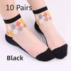 10 Pairs Women's Spring/summer Casual Argyle Flower Glass Silk Mid-tube Women's Socks Boneless Hand Sewn Crystal Silk Socks