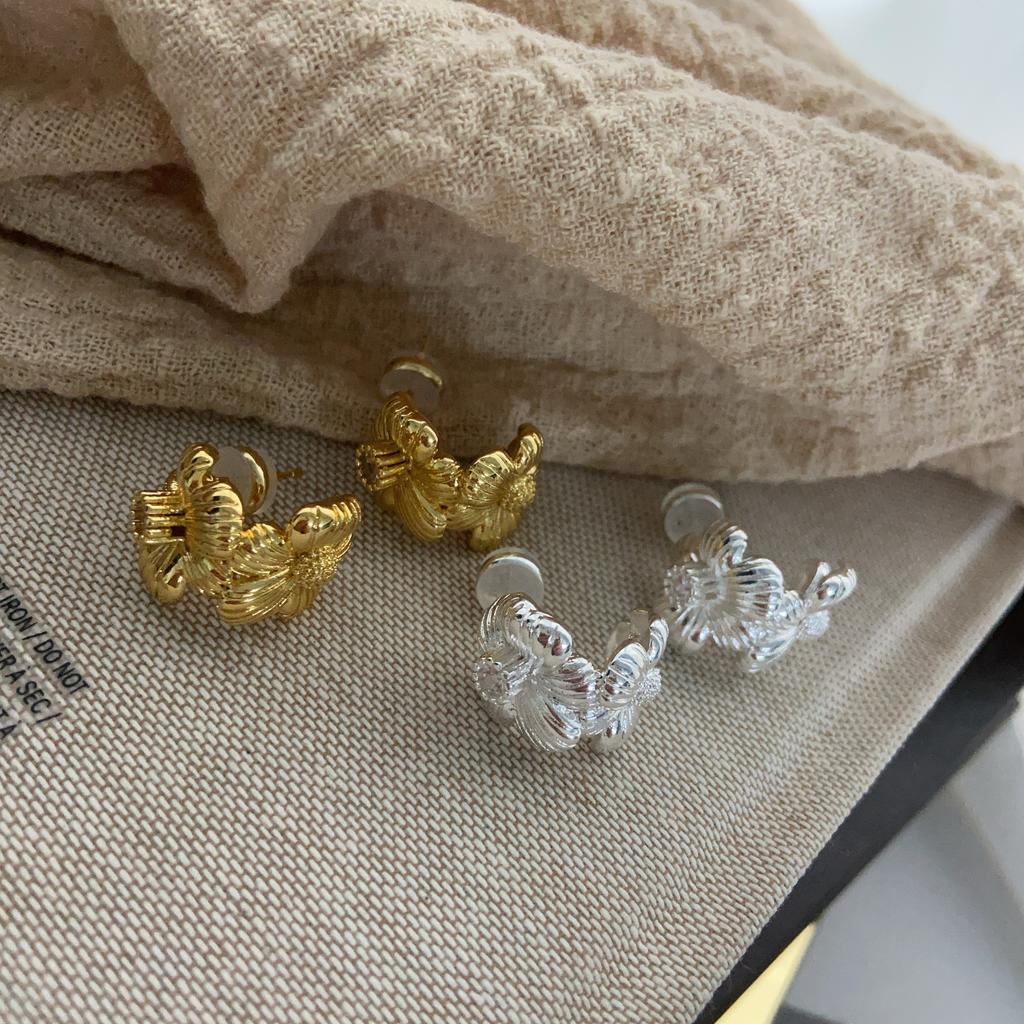 Exaggerated Atmosphere Flower Earrings Metal Wind Niche Design Earrings Women'S Light Luxury High-End Stud Earrings
