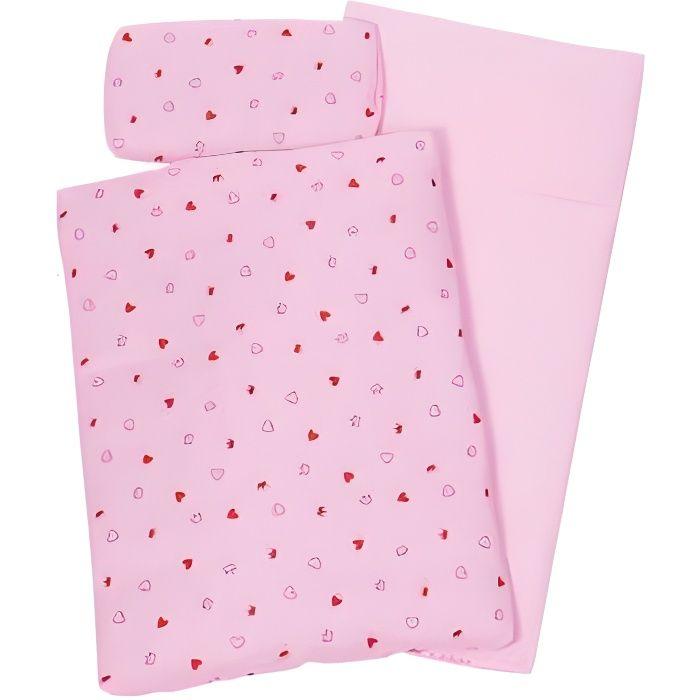 Literie de poupée - goki - rose à coeurs - ensemble oreiller, dessus et dessous de lit
