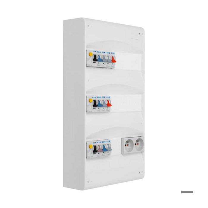 3-row Pre-equipped Panel 2 RCD 40A + 1 RCD 63A + 10 MCBs + 2 Sockets