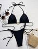 Women's Swimsuit Black Halter Neck Triangle Bag Behind Back Tied Bikini Suit Beachwear Bathing Suits