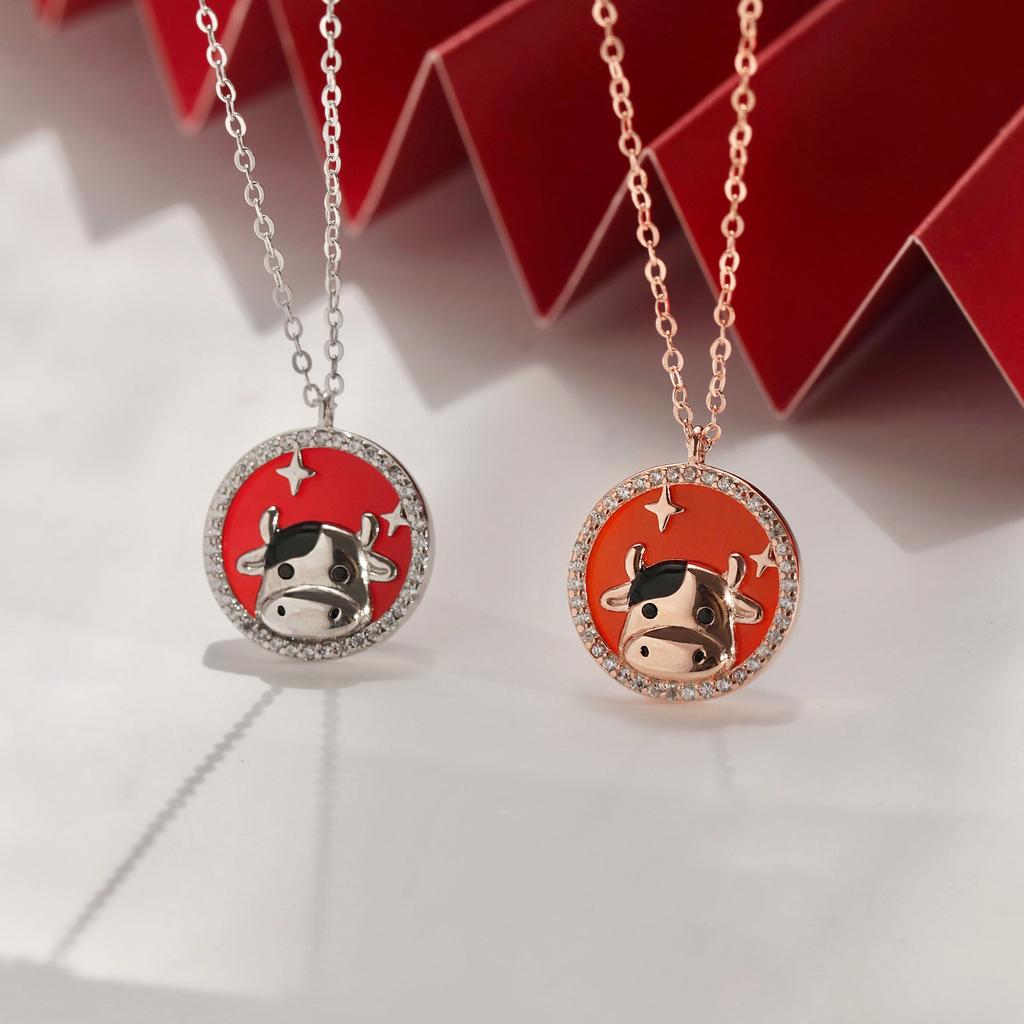 Year of The Ox Necklace for Women, Fashionable and Cute. Bull Red Agate Round Brand Collarbone Chain