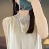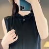 Experience timeless sophistication with this sleeveless layered shirt, crafted from luxurious satin for a silky and smooth feel. Featuring a stand collar for a modern twist and a sleek, solid pattern, this piece effortlessly elevates any ensemble. Ideal for both day and evening wear, its versatile design makes it a staple addition to any wardrobe.