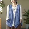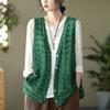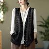 Ethnic Style Women's Cotton Hollow Vest Single-breasted Thin Lace Vest Summer Loose Cardigan Vest Outwear