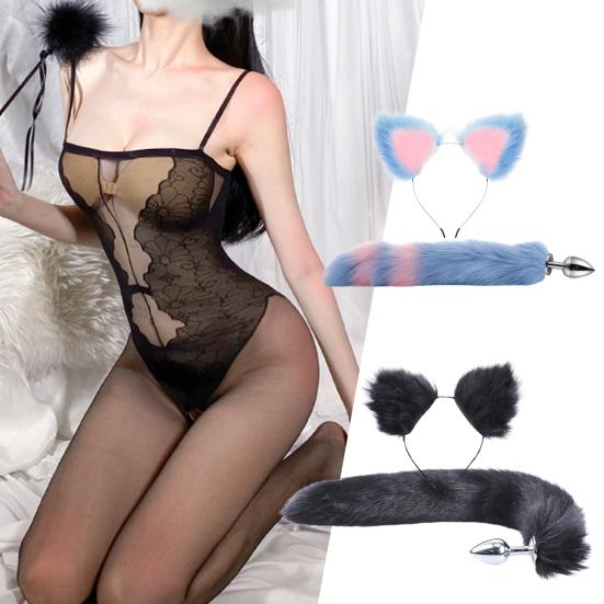 Yousheng 1 Set Anal Plug with Headband Multicolor Relieve Fatigue Quick To Climax Reusable Role Play Tool Aluminum Alloy Fox Tail Exotic Accessories